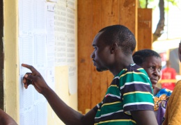 Wakazi wa wa Ukerewe wakihakiki majina yao kwenye orodha ya wapiga kura iliyobandikwa katika vituo mbalimbali vya kupigia kura.